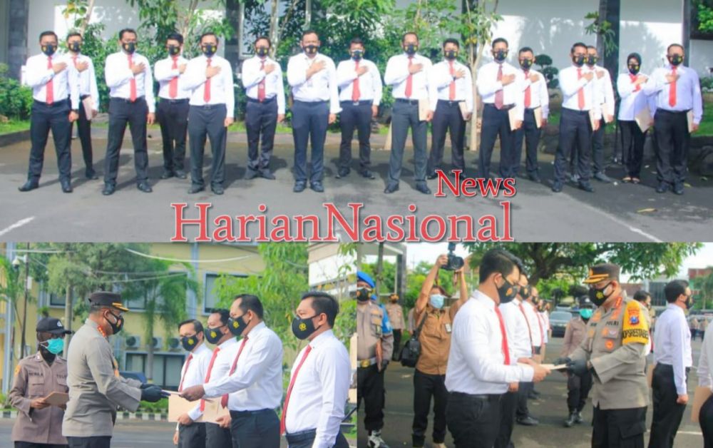 SURABAYA, HNN - Kapolrestabes Surabaya Kombes Pol Johnny Eddizon Isir, S.I.K., M.T.C.P., melaksanakan pemberian penghargaan kepada 17 Anggotanya yang berprestasi di Lapangan B Polrestabes Surabaya, Jum’at (05/02/2021).