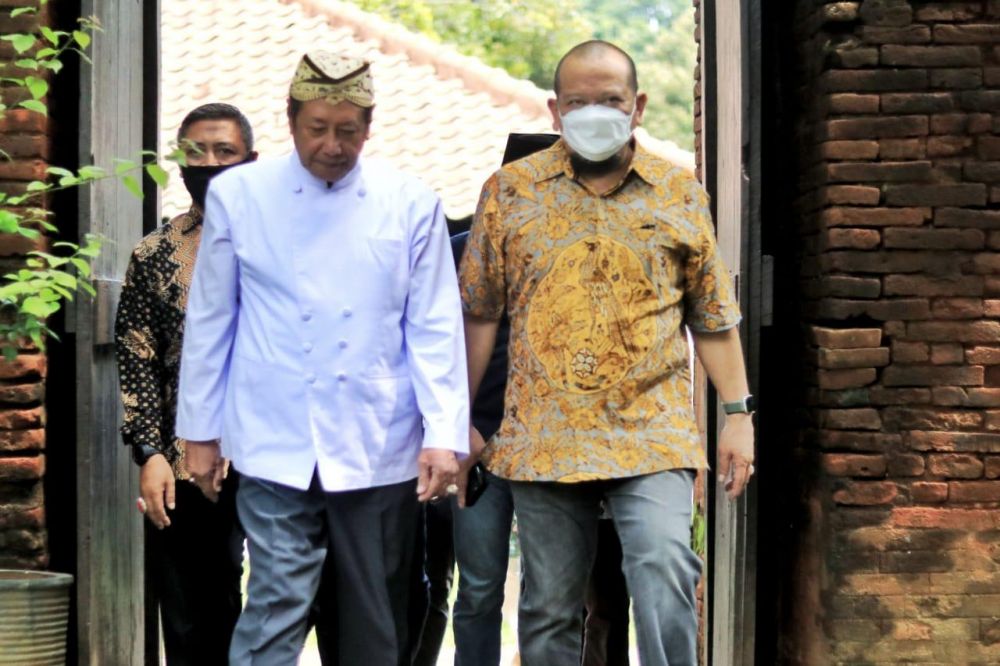 Ketua DPD RI, AA LaNyalla Mahmud Mattalitti saat mengunjungi Kasultanan Keraton Cirebon, Minggu (28/2/2021).