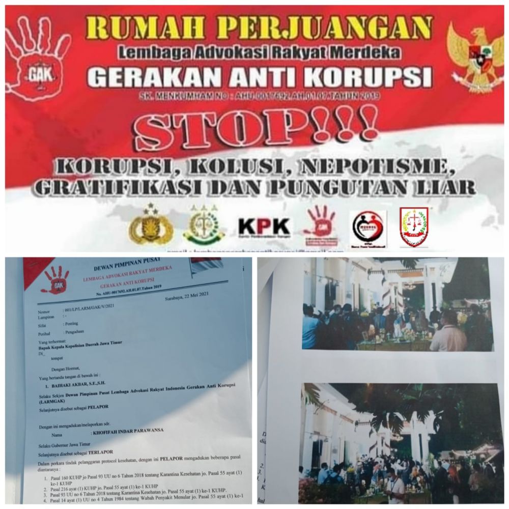 Hingga salah satu LSM Larm-Gak akan membuat laporan terkait adanya pelanggaran Prokes di pesta ultah Gubernur Jawa Timur.