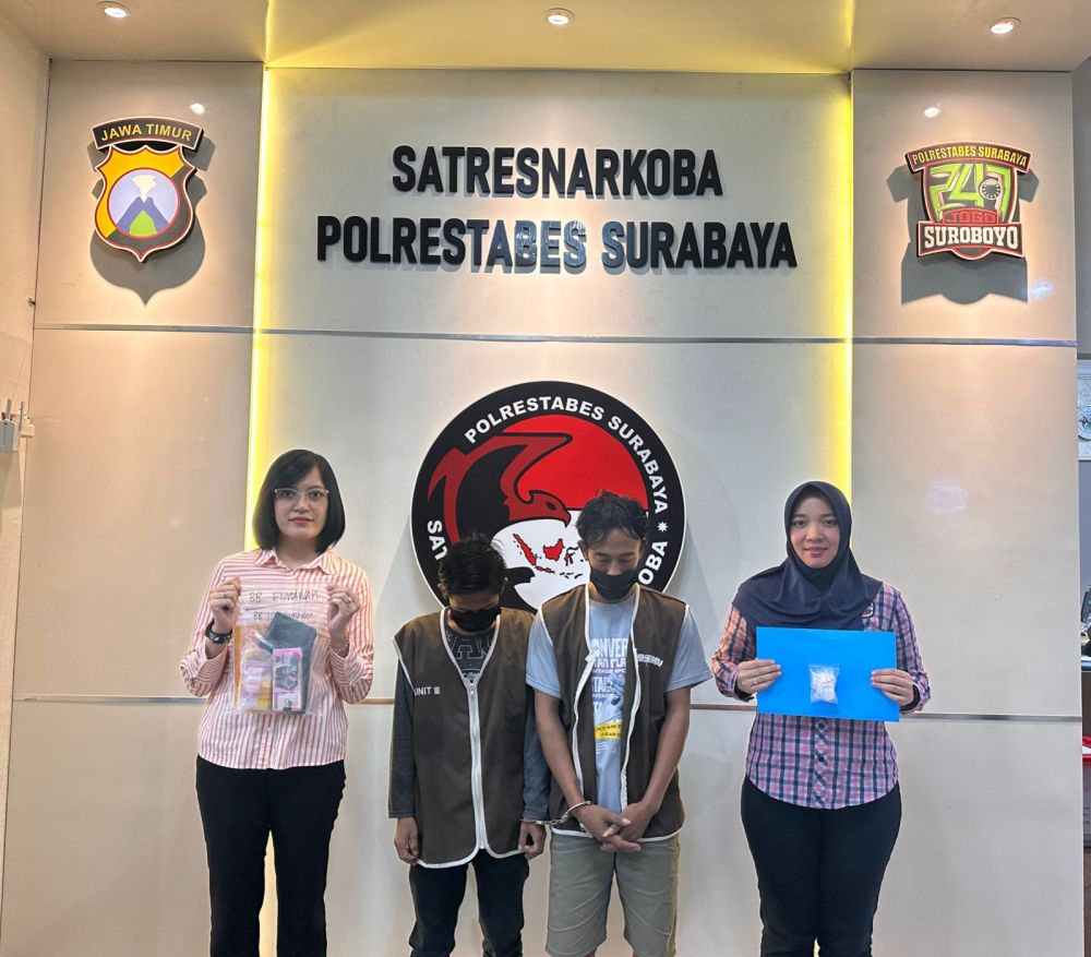 Surabaya, HNN - Kembali anggota Satresnarkoba Polrestabes Surabaya mengamankan dua pengedar barang haram narkotika jenis sabu inisial tersangka yakni GN (40) alamat kontrak di Dusun Petal Desa Domas Kec. Menganti Kab. Gresik serta RP (26) alamat Dusun Kecipik Desa Boteng Kec. Menganti Kab. Gresik.