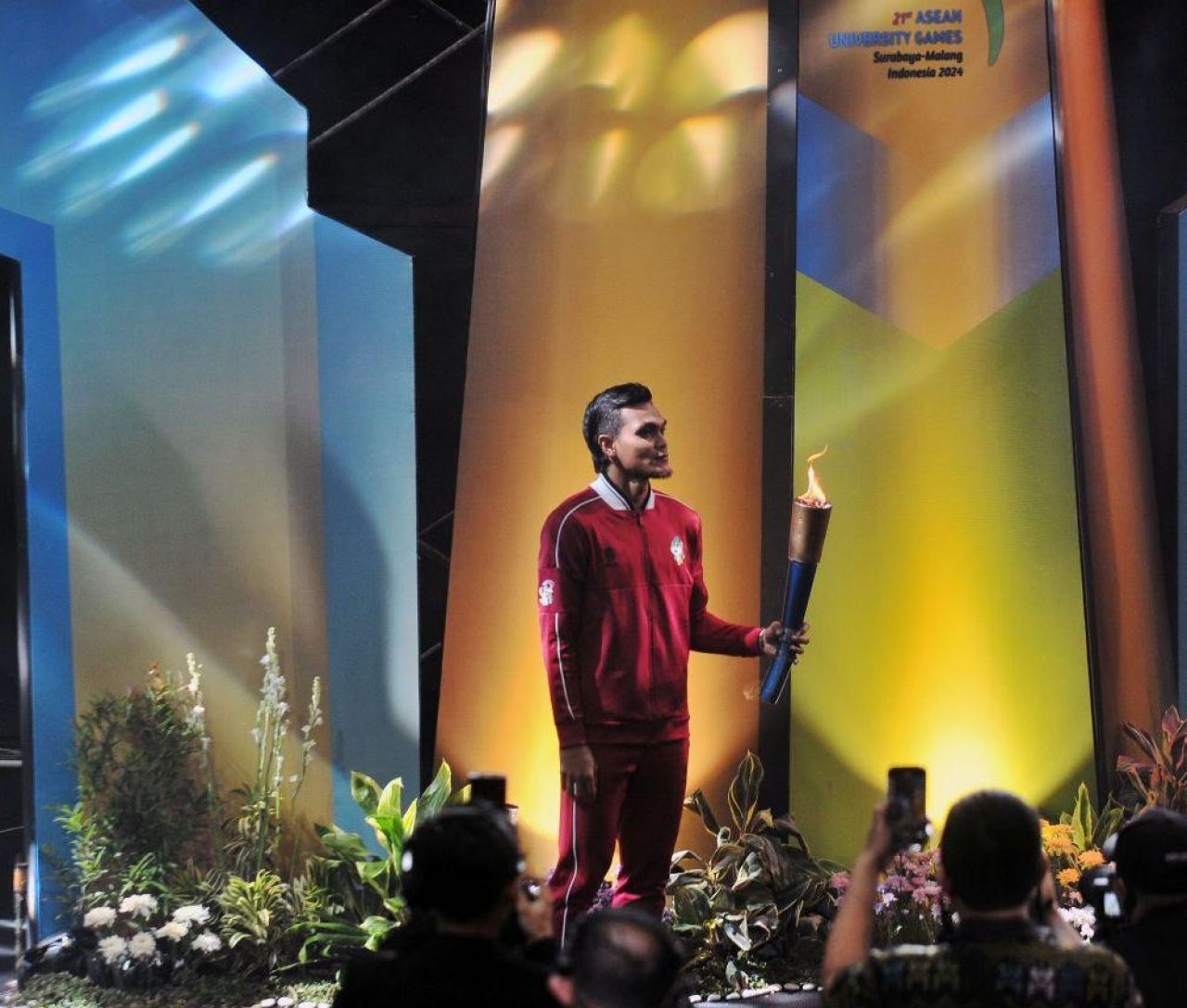 SURABAYA, HNN - Opening Ceremony atau upacara pembukaan Pekan Olahraga Mahasiswa se ASEAN atau AUG ke XXI SurabayaMalang Indonesia 2024 telah selesai dilangsungkan. Bertempat di GOR Basket Internasional UNESA Surabaya pada Selasa (25/06/2024), Rahmat "Ryan" Irianto tampil sebagai pembawa dan penyulut obor ASEAN University Games XXI 2024.