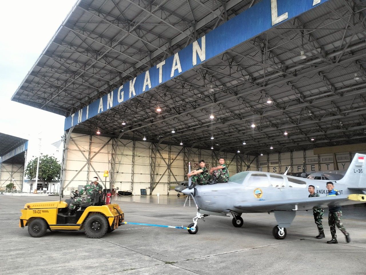 Kepala Fasilitas Pemeliharaan dan Perbaikan Pesawat Udara (Kafasharkan Pesud) Kolonel Laut (T) Johny Setyawan Sofiandi berserta Kepala Departemen Alat Bantu Udara (Kadep Albandar) Mayor Laut (T) Trisnanto Setiyadi melaksanakan pergeseran monument pesawat Bonanza dengan nomor lambung L-36 di Hanggar 1 Fasharkan Pesud ke Senerbal.
