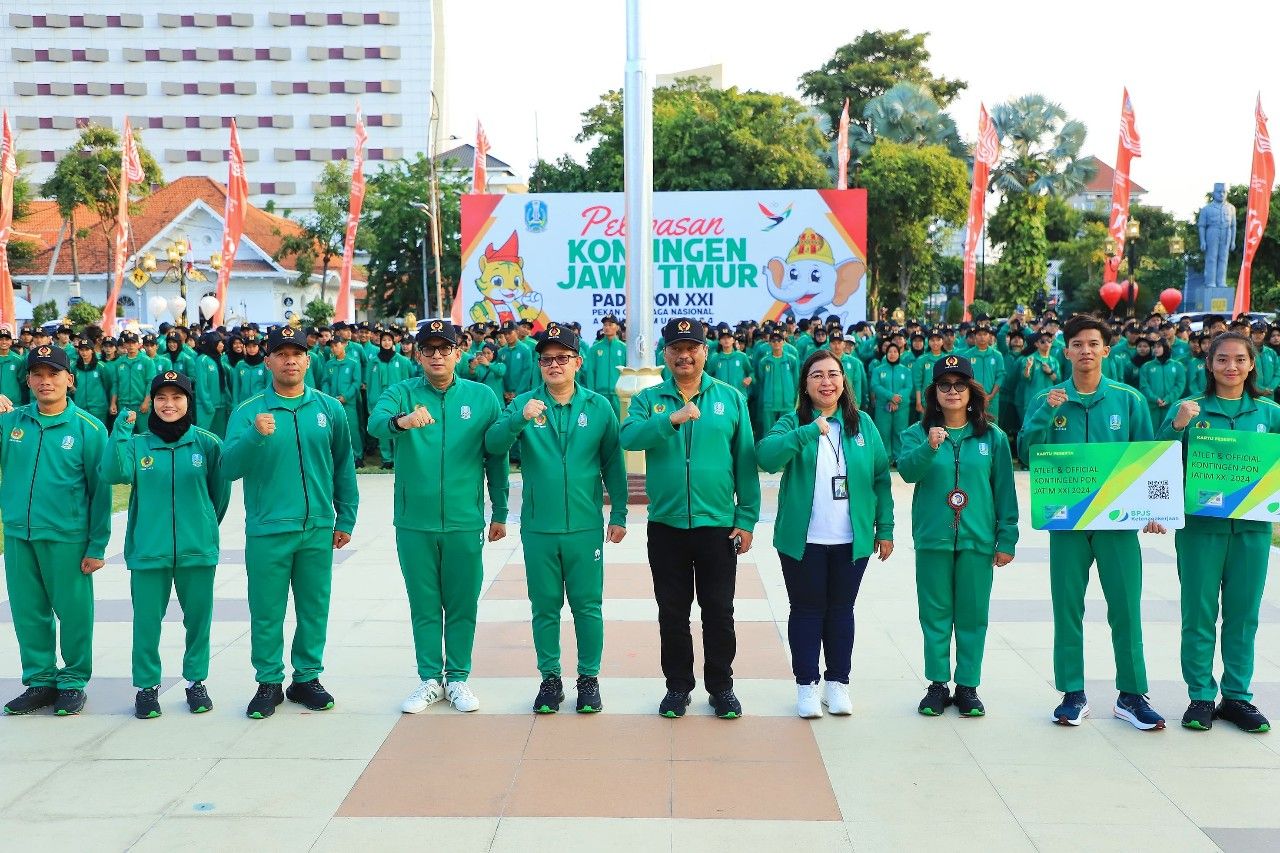 Pelepasan Kontingen Jawa Timur ini sendiri berjalan semarak. Di samping memberikan motivasi, Pj. Gubernur Adhy beserta segenap Forkopimda Jatim, Ketua Perwosi Jatim Arumi Bachsin Emil Dardak, dan para Kepala Perangkat Daerah Pemprov Jatim turut melakukan Flash Mop bersama dengan para atlet.