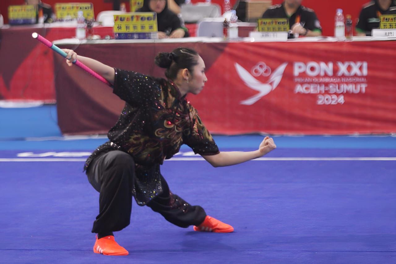 Adapun 5 emas yang diraih Tim Wushu Jatim, masing-masing dipersembahkan Alisya Mellynar Taolu Taijiquan putri, Michael Arrol Nestor Jennings di kelas Taolu Wingchun Butterfly Sword putra,