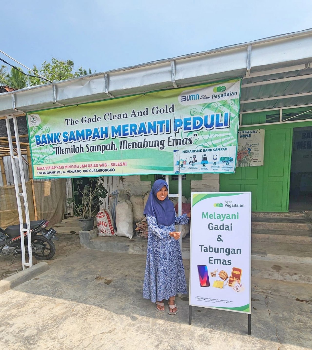 Sejak bergabung sebagai Agen Pegadaian pada tahun 2022, ia telah merangkul 111 nasabah dari kalangan warga desa yang aktif mengumpulkan sampah dan menabung hasilnya dalam bentuk emas.