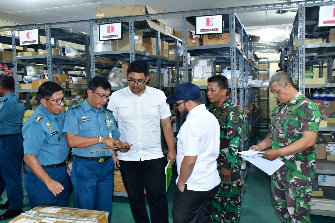 Wakil Komandan Puspenerbal Laksma TNl Bayu Alisyahbana mewakili Danpuspenerbal, Laksda TNl Sisyani Jaffar menerima sekaligus membuka pelaksanaan Wasrik BPK Rl ini di Rupat Gedung R. Kasenda Mako Puspenerbal Juanda, Rabu (26/2/2025).