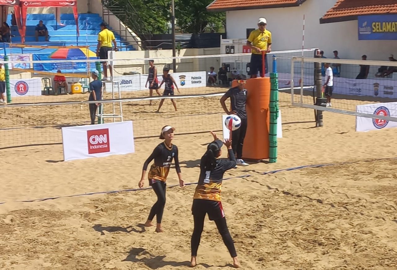 SIDOARJO-HNN : Sebanyak 25 tim putra dan 24 tim putri mengikuti kejuaraan nasional voli pantai antar klub U17 MAVI Cup di lapangan voli pantai Sidoarjo 23-27 Juli 2025.