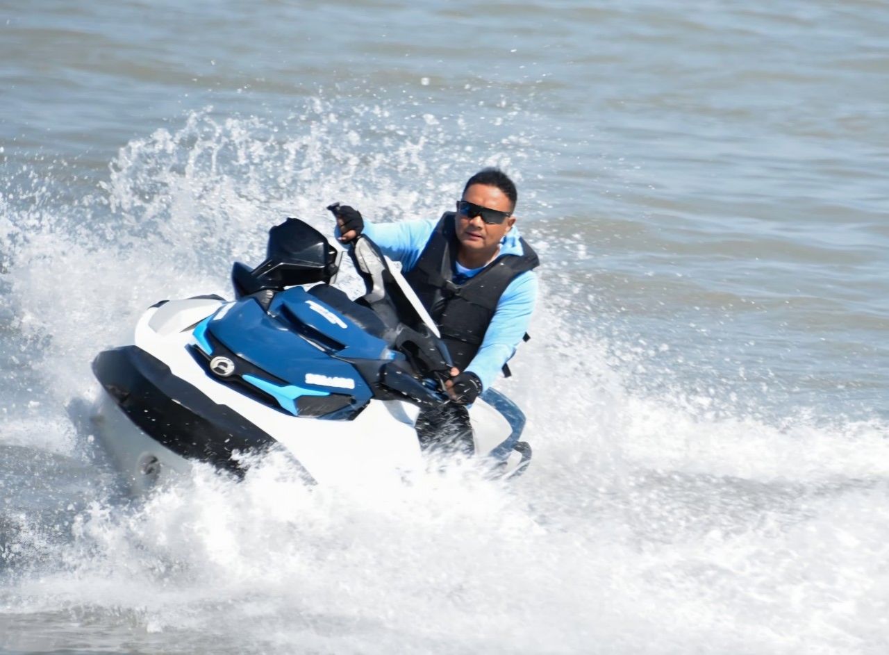 Dalam kesempatan tersebut, Danpuspenerbal berkesempatan mencoba olahraga air yang melibatkan penggunaan perahu kecil bermesin jet untuk melaju di permukaan air dengan kecepatan tinggi.