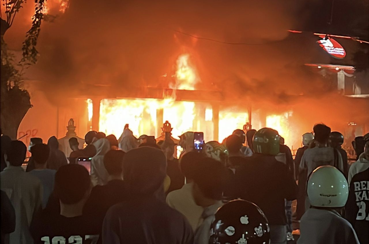 Kebakaran berlangsung cepat, disertai kobaran api besar yang membuat wartawan dan warga sekitar panik. Asap hitam pekat membumbung tinggi, terlihat jelas dari Jalan Gubernur Suryo yang ditutup total akibat kericuhan.