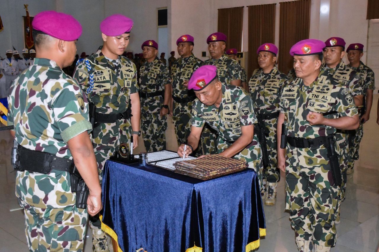 SIDOARJO, HNN - Kolonel Marinir Marhabang, S.H., M.Tr.Hanla., M.M, menjabat sebagai Komandan Resimen Artileri 2 Marinir (Danmenart 2 Mar) menggantikan Kolonel Marinir Widoyono, M.Tr.Hanla., M.M, yang diresmikan dalam suatu upacara serah terima jabatan yang dipimpin langsung Komandan Pasmar 2 Mayjen TNI (Mar) Dr. Oni Junianto, di Gedung Balai Prajurit Gafur Chalik Pasmar 2, Kesatrian Marinir Moekijat, Gedangan, Sidoarjo. Senin (22/12/2025).