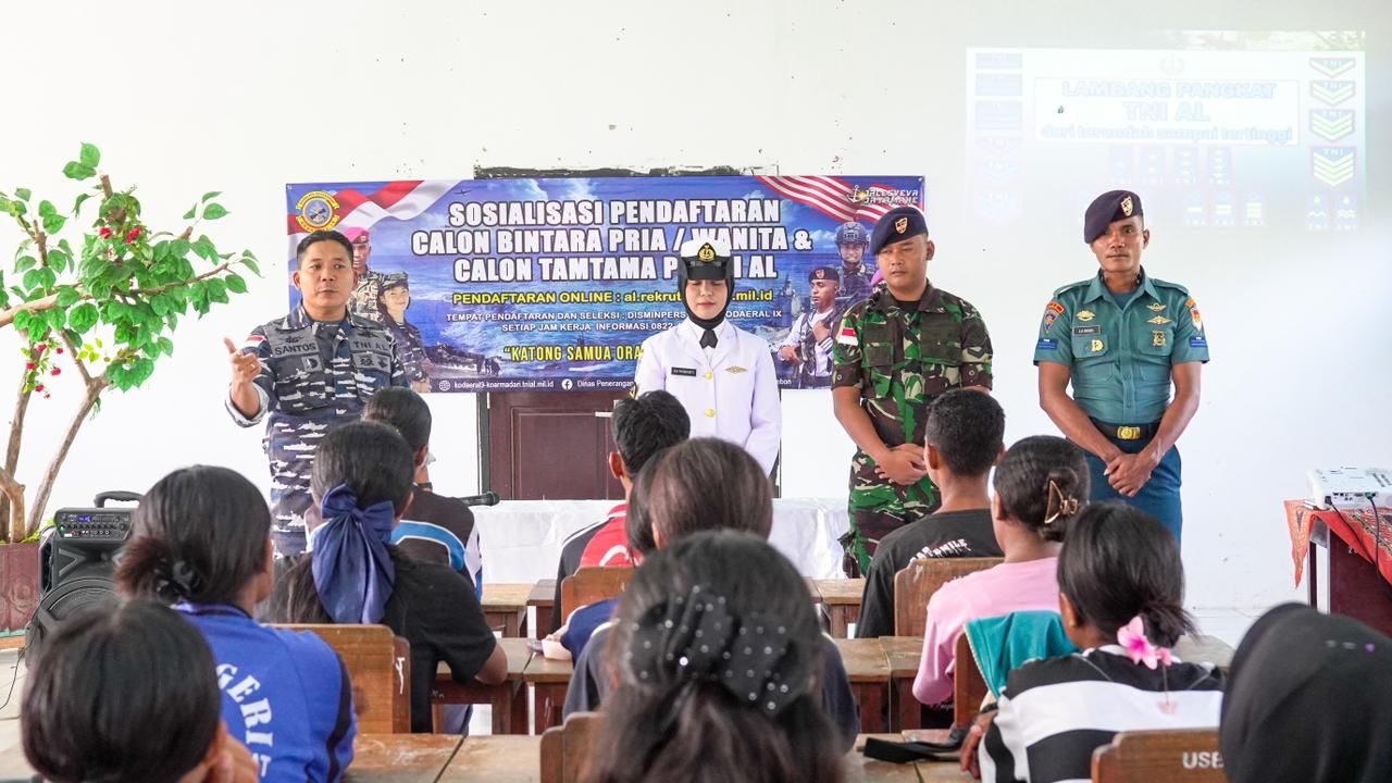 Ambon, HNN - Guna menjaring bibit unggul dan pastikan seleksi penerimaan berjalan transfaran dari kalangan pelajar, Komando Daerah Angkatan Laut lX (Kodaeral IX) melaksanakan sosialisasi penerimaan calon prajurit TNI AL TA. 2026 di Wilayah Pesisir Pulau Seram Bagian Barat pada Jumat (30/1/2026).