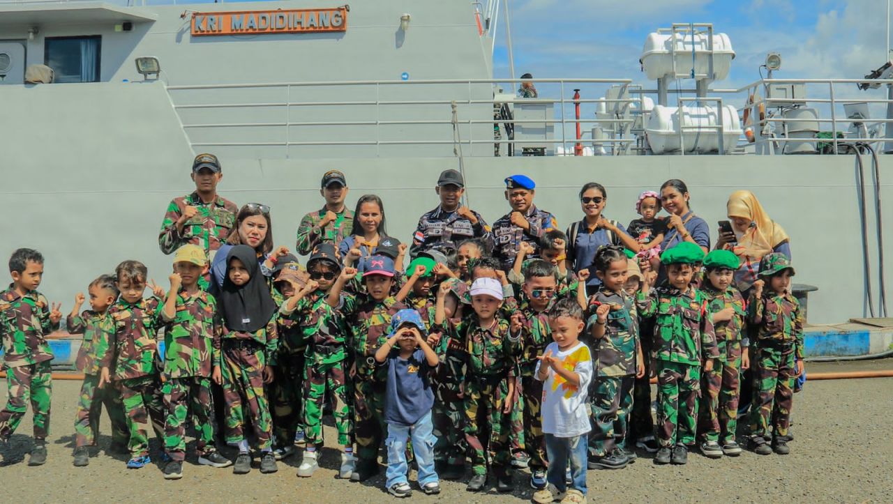Ambon, HNN - Guna menumbuhkan jiwa bahari pada generasi muda sejak dini, Komando Daerah Angkatan Laut lX (Kodaeral IX) menerima kunjungan edukasi dari siswa TK Kartika XIII-2 yang berkunjung ke KRI Madidihang-855 yang sandar di Dermaga Irian, Mako Kodaeral IX, Halong, Baguala, Kota Ambon, Maluku pada Selasa (10/2/2026).
