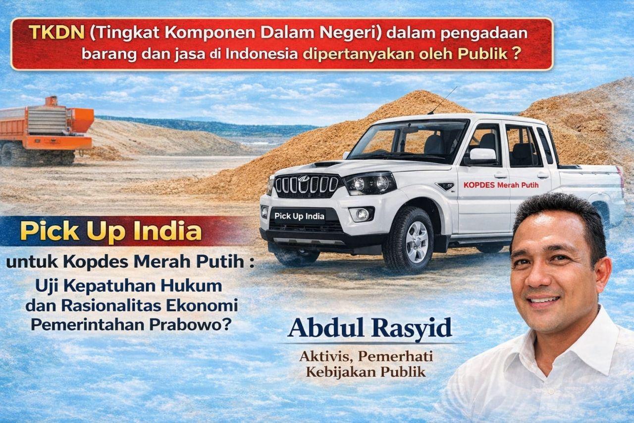 Rencana atau realisasi pengadaan mobil pick up impor dari India untuk Koperasi Desa Merah Putih memunculkan pertanyaan penting: apakah kebijakan tersebut sejalan dengan hukum nasional dan kepentingan ekonomi Indonesia? Dalam konteks pengadaan barang dan jasa, isu ini tidak sekadar soal pilihan merek atau harga, tetapi menyentuh dimensi regulasi, keberpihakan industri, serta prinsip kedaulatan ekonomi.