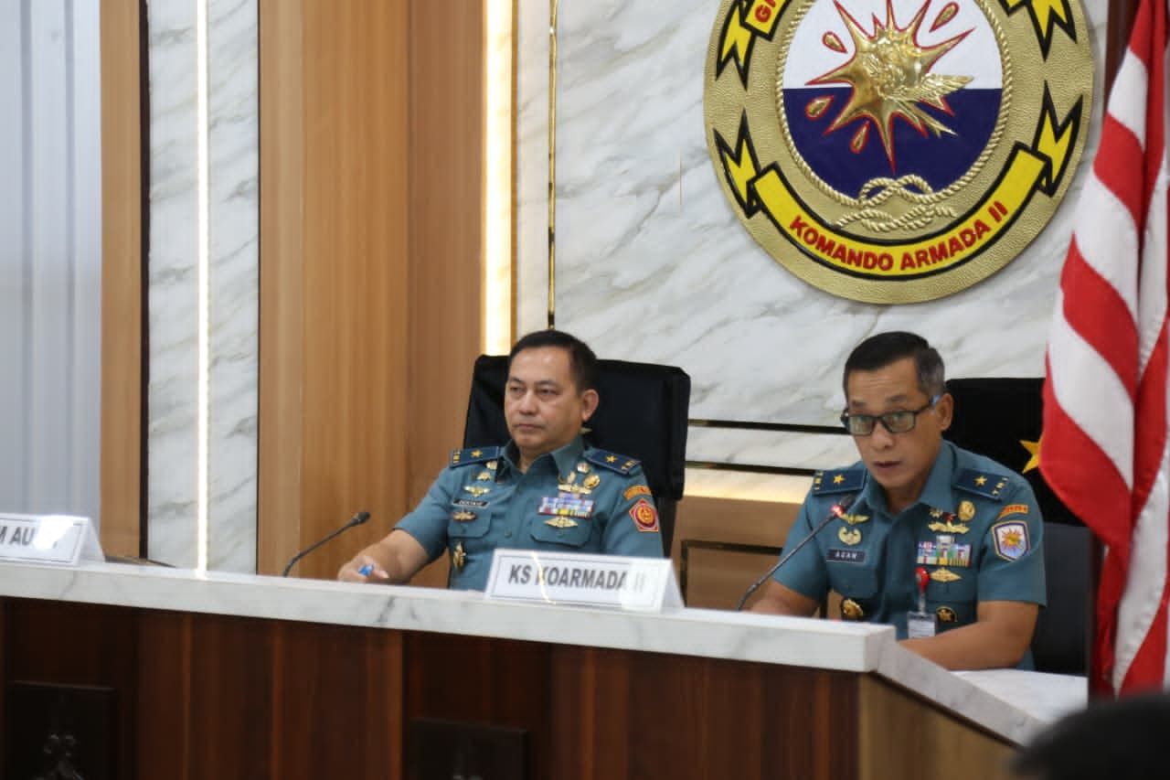 Surabaya, HNN - Dalam rangka mendukung pelaksanaan kegiatan pemantauan pembinaan kesiapan, penggunaan dan pembangunan kekuatan di wilayah Jawa Timur, Kepala Staf Komando Armada II (Kaskoarmada II) Laksma TNI Agam Endrasmoro memimpin Entry Meeting Audit Ketaatan, Kinerja dan Tata Kelola Itjen TNI Periode I TA 2026 di Koarmada II, bersama Ses Itjen TNI Laksma TNI Oktave Ferdinal. Kegiatan berlangsung di Rupat Candrasa Koarmada II Ujung Surabaya, Kamis (26/2).