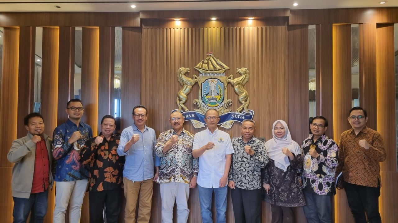 Delegasi UNESA yang dipimpin Wakil Rektor I Bidang Akademik, Kemahasiswaan, dan Alumni, Prof. Dr. Martadi, M.Sn., disambut jajaran pengurus Kadin Jatim di Kantor Kadin Jatim, kawasan Bukit Darmo Golf, Kamis (26/02). Pertemuan tersebut menjadi momentum penting dalam implementasi nota kesepahaman (MoU) strategis guna mencetak sumber daya manusia (SDM) unggul berdaya saing global.