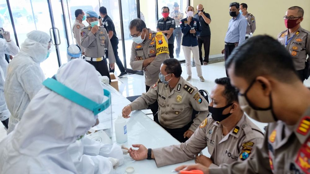 Dalam hal ini, sejumlah 104 orang Pejabat utama, Kapolsek jajaran, Polsek jajaran, dan para perwira Polresta Sidoarjo dilakukan pengecekan suhu tubuh, pemeriksaan kesehatan kemudian dilakukan rapid test Covid-19.