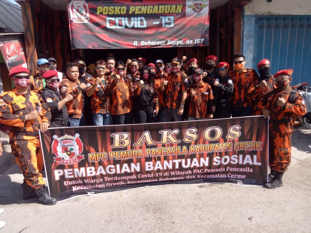 Ketua MPC Pemuda Pancasila Gresik, Sardjono, didampingi Sekretarisnya, Agus Made, mengatakan Bakti Sosial bertajuk Peduli Kemanusiaan ini memberikan paket sembako kepada warga yang terdampak Covid-19, khusus dari keluarga kurang mampu.