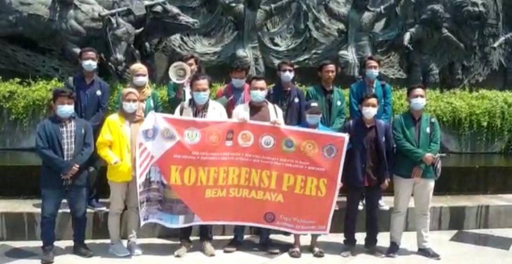 Para mahasiswa menyampaikan beberapa sikap atas dinamika yang terjadi terutama di Kota Surabaya, maka Forum BEM Surabaya mengajak seluruh elemen mahasiswa Surabaya untuk menjaga kondusifitas Kota Surabaya serta tetap mengawal issue yang sedang berkembang terkait disahkannya UU Omnibus Law dengan cara-cara akademis.