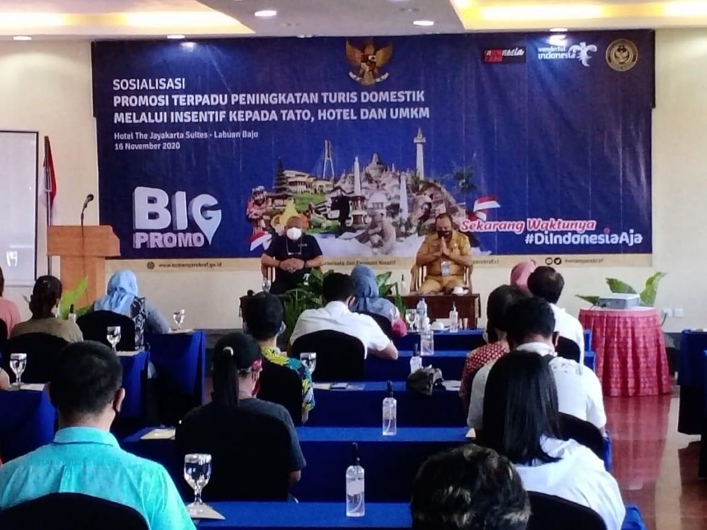 “Salah satunya juga adalah Big Promo. Program ini dijalankan oleh Kemenparekraf yang bertujuan membantu bergeraknya perekonomian melalui sektor pariwisata dengan memberikan insentif melalui paket-paket wisata yang ditawarkan oleh industri travel agent/tour operator (TATO), restoran, atraksi (spa dan golf), serta sektor UMKM berupa industri kreatif lokal,” terangnya.