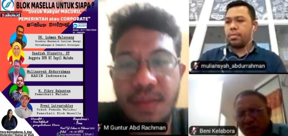 AMBON, HNN - Acara webinar nasional di selenggarakan Indonesia Resources bertema Blok Masela untuk Siapa : untuk Rakyat Maluku, Pemerintah atau Corporate sangat seru dan menghadirkan suara - suara kritis dari sejumlah tokoh dari Maluku di berbagai penjuru, semalam pada pukul 19.00 - 23.00 WIB, Selasa (2/2/2021).