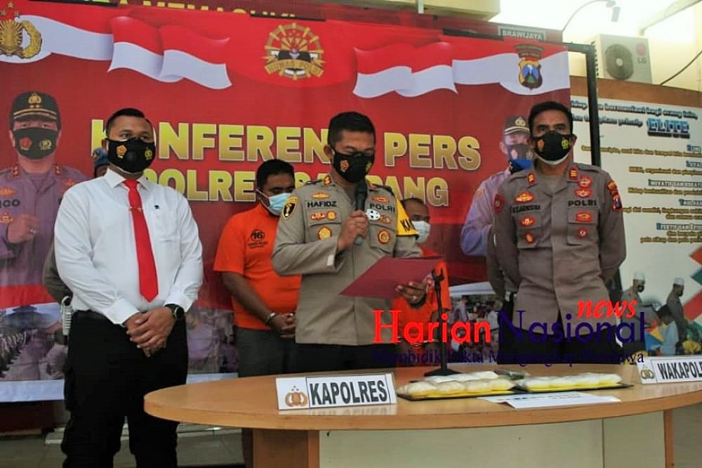 SAMPANG, HNN - Telah dilaksanakan kegiatan Konferensi Press di halaman Mapolres Sampang, Senin, (08 Februari 2021). Terkait keberhasilan Polsek Sokobanah ungkap dan tangkap pengedar Narkotika jenis sabu-sabu seberat 1009,68 gram.