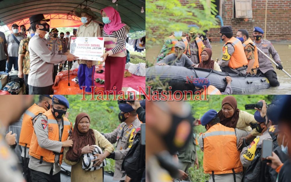 JOMBANG, HNN - Kapolda Jatim Irjen Pol Dr. Nico Afinta didampingi Pejabat Utama (PJU) Polda Jatim beserta Kabid Humas Polda Jatim Kombes Pol Gatot Repli Handoko melaksanakan peninjuan di tempat pengungsian bencana banjir, tepatnya di Balai Desa Gondangmanis, Kecamatan Bandar Kedung Mulyo, Kabupaten Jombang. Menurut Kapolda Jatim Irjen Pol Dr. Nico Afinta mengatakan, bahwa jajaran TNI-Polri siap membantu masyarakat yang terkena dampak bencana banjir, dan akan disiagakan untuk bisa membantu korban bencana banjir yang terjadi di Jombang. "Kami beserta TNI-Polri sudah menyiapkan tempat dan posko kesehatan untuk pengungsian warga, dan kami juga memberikan bantuan sosial kepada korban bencana banjir, hal ini dilakukan untuk meringankan beban warga yang terdampak akibat bencana banjir," ujar Irjen Pol Dr. Nico pada media ini, Selasa (09/02/2021). Diungkapkan, bantuan yang diberikan kepada warga berupa beras dua ton, dan paket bantuan berisi obat-obatan serta dua ribu masker. Semoga bantuan tersebut dapat bermanfaat dan bisa meringankan beban korban bencana banjir. Diketahui, dalam peninjuan pengungsian bencana banjir, Kapolda Jatim melakukan pengecekan di rumah-rumah warga yang masih terkena banjir dengan menggunakan sepatu boots dan berjalan kaki menuju ke rumah-rumah warga yang masih terendam banjir sambil menyapa masyarakat yang berada didalam tenda pengungsian darurat. Saat itu Kapolda Jatim Bersama Wakil Bupati Kabupaten Jombang menaiki perahu karet milik Sat Brimob menuju lokasi rumah warga yang masih terendam banjir, Sesampainya di lokasi, Kapolda Jatim juga memberikan bantuan sosial kepada warga setempat yang masih bertahan didalam rumah tersebut. "Jika masih ada warga yang ada didalam rumah maupun tenda darurat, diharapkan nantinya dapat dievakuasi ke tempat yang lebih aman dan nyaman yakni, ke posko kesehatan. Karena hal ini untuk mengantisipasi jika hujan kembali turun," terangnya. Selain itu, untuk membantu korban bencana yang terjadi di Jawa Timur. Kapolda Jatim juga telah membentuk Satgas Bencana dari jajaran Brimob dan Samapta agar dapat saling berkoordinasi dengan Pemerintah Daerah di Jatim, terkait dengan bencana alam yang masih terjadi. Maka dilaksanakan pengecekan dan pencegahan jika terjadi bencana. (Ims)