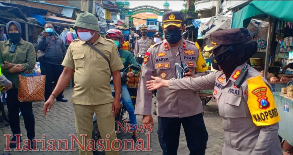 Kunjungan Kapolsek Asemrowo bersama Kapolres Pelabuhan Tanjung Perak di lokasi pasar, selain memberikan himbauan Kamtibmas, personil juga membagikan masker kepada pengunjung dan pedagang sekitar sebanyak 500 masker.