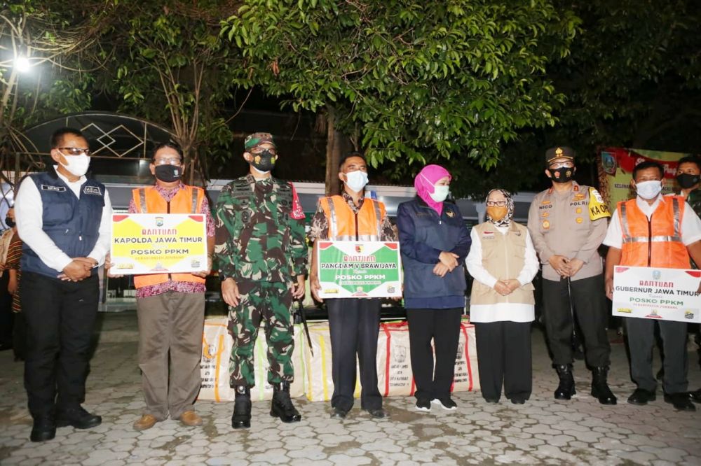 JOMBANG, HNN - Gubenur Jatim, Khofifah Indar Parawansa, Pangdam V Brawijaya Mayjend TNI Suharyanto, dan Kapolda Jawa Timur, Irjen Pol Nico Afinta, bersama Pejabat Utama Polda Jatim. Melakukan kunjungan di Posko PPKM Mikro, di dua lokasi. Diantaranya desa Sidomulyo dan Kepanjen, Kabupaten Jombang, Jawa Timur. Pada Rabu malam (24/2/2021).