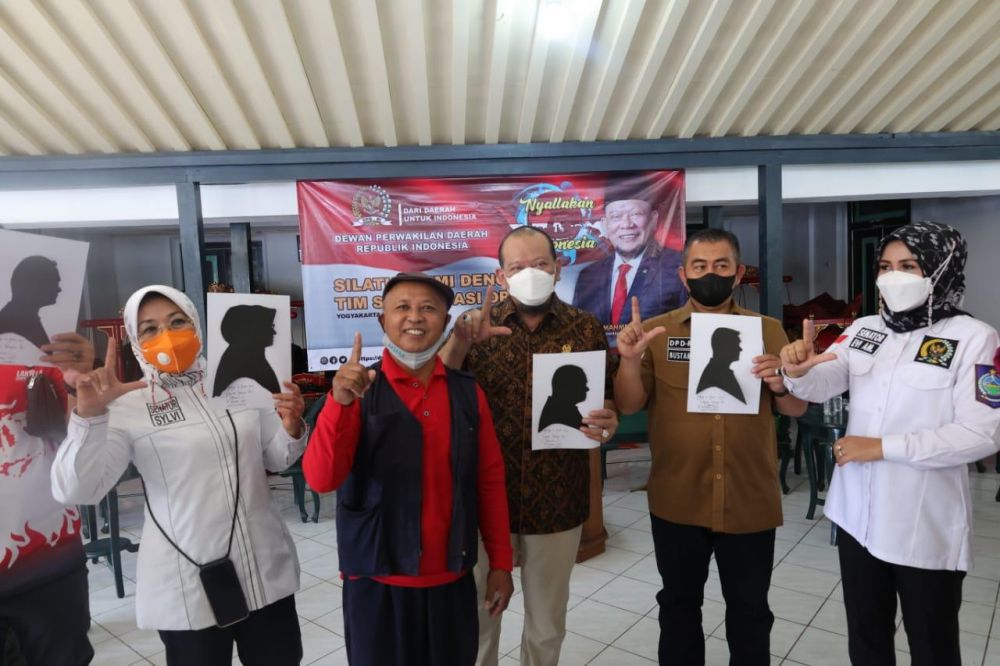 Siluet tersebut berbentuk bayangan dari Ketua DPD RI, AA LaNyalla Mahmud Mattalitti, yang sedang memberi arahan kepada kepada Tim Sosialisasi DPD di Yogyakarta.