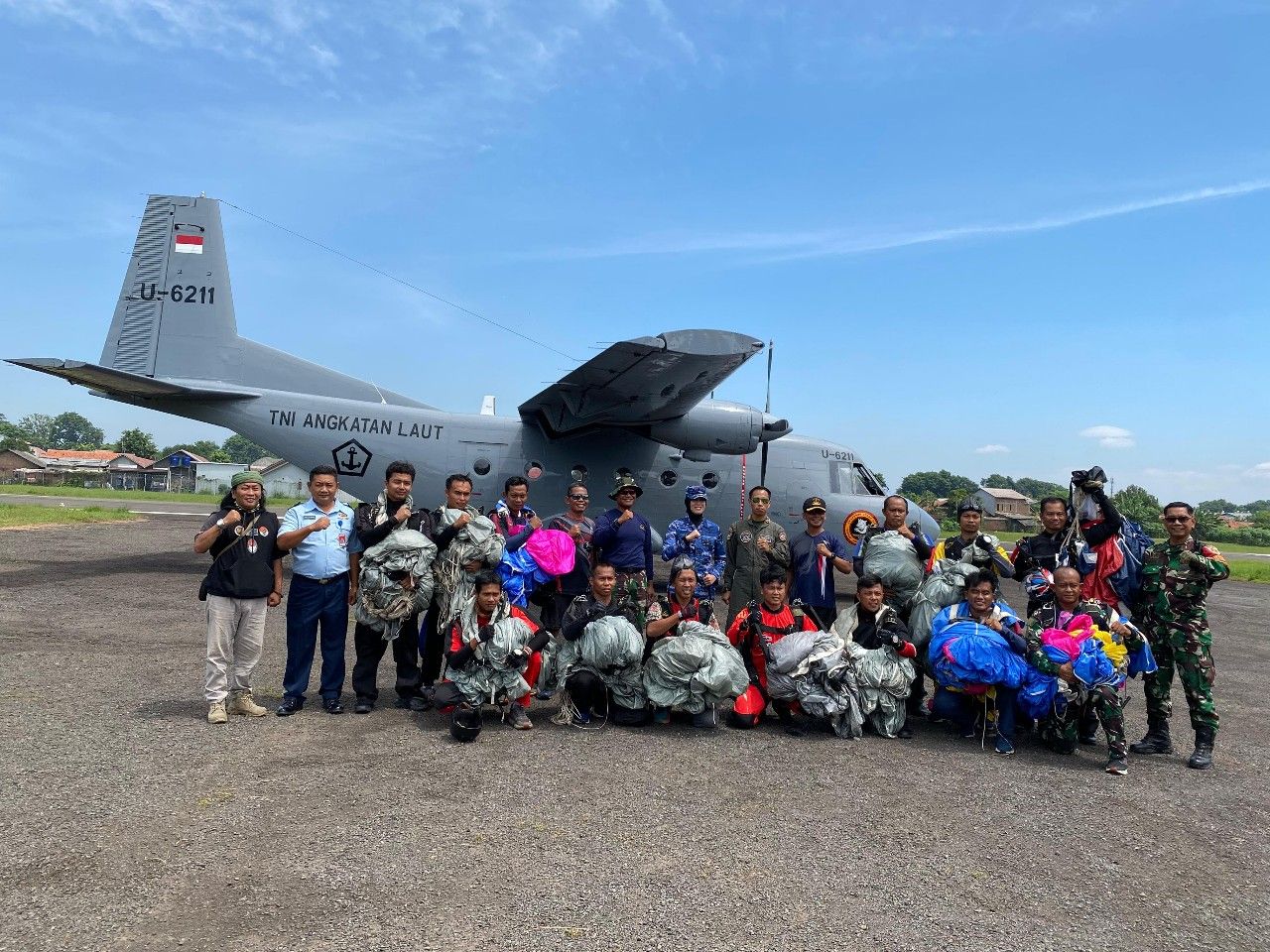 "Puji Syukur kepada Tuhan Yang Maha Kuasa, latihan berjalan dengan aman dan lancar, selamat melaksanakan penerbangan kembali ke Pangkalan Tanjungpinang, suatu kebanggaan dapat melaksanakan penerjunan di bulan Puasa dengan Pesud Puspenerbal," ujar Dandenjaka TNl AL ini.