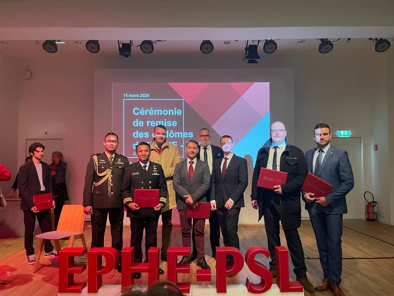 Sen -sapaan akrab perwira menengah melati satu di pundak lulusan AAL Angkatan ke-51 ini, melaksanakan Wisuda Master 2 Parcours Géopolitique et stratégique EPHE-PSL université Paris dan Expert Management Commandement et Stratégie (Niveau 8 : Doctoral) di Amphithéâtre INHA (l'Institut National D'histoire De L'art) Paris, Perancis pada Rabu (21/3) lalu.