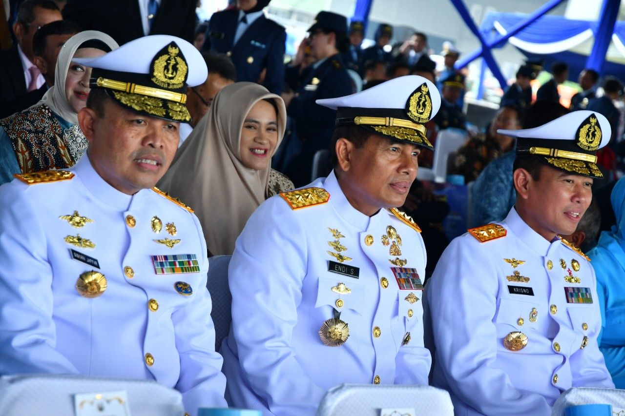 Jakarta | HNN - Komandan Pusat Penerbangan TNl Angkatan Laut (Danpuspenerbal) Laksda TNl Sisyani Jaffar didampingi dan Ketua PG Jalasenastri Puspenerbal Ny. Vivi Sisyani Jaffar menghadiri Upacara Serah Terima Jabatan (Sertijab) Kepala Staf Angkatan Udara (KSAU) di Lanud Halim Perdana Kusuma, Jakarta Timur, Jumat (5/4/2024).