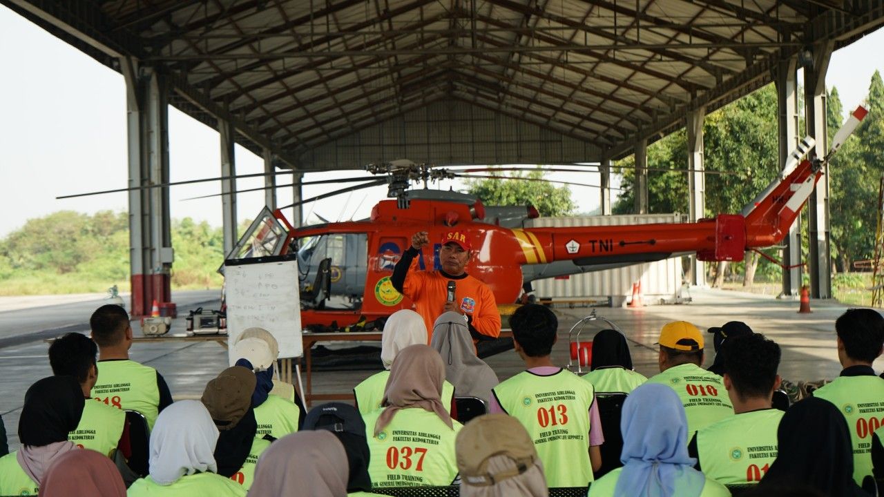 Puspenerbal, HNN - Sebanyak 75 Mahasiswa dari Universitas Airlangga (Unair) Surabaya berkunjung ke shelter Skuadron Udara 400 Wing Udara 2 Puspenerbal Juanda guna melaksanakan serangkaian kegiatan praktik latihan dan menerima materi tentang Evakuasi Medis Udara (EMU) pada Senin (3/6/2024).