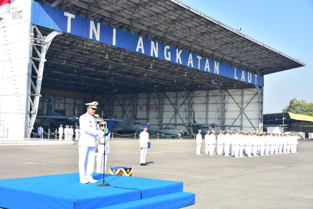 Puspenerbal, HNN - Komandan Pusat Penerbangan TNI Angkatan Laut (Danpuspenerbal) Laksda TNI Sisyani Jaffar memimpin jalannya Upacara Peringatan HUT ke-79 Kemerdekaan Republik Indonesia Tahun 2024 di Apron Pangkalan Udara TNI Angkatan Laut Juanda, Sabtu (17/8/2024).