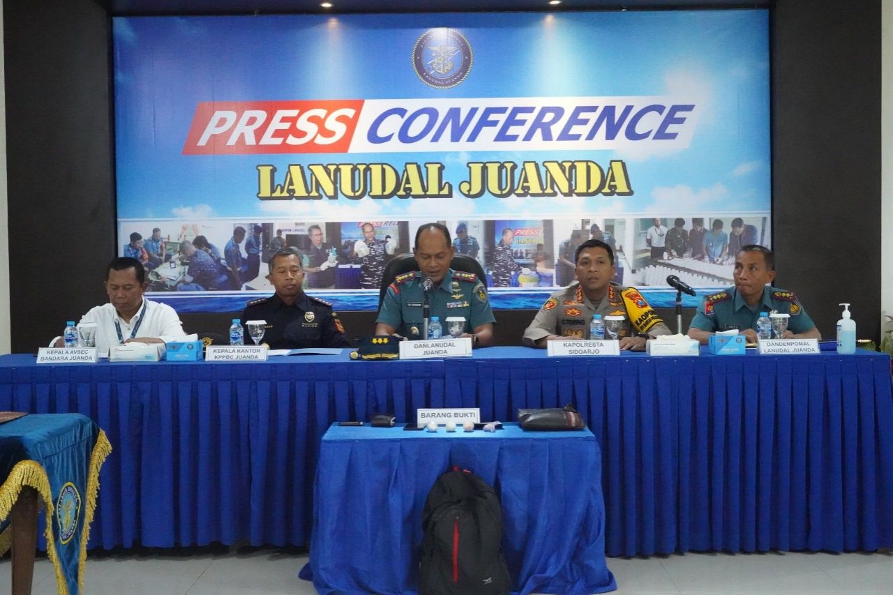 Press release keberhasilan pengungkapan upaya penyelundupan tersebut, dilakukan bersama GM AP I, Kapolresta Sidoarjo, Kepala KPP Bea Cukai Juanda, Manager Avsec Bandara Juanda, dan Dandenpom Lanudal Juanda.