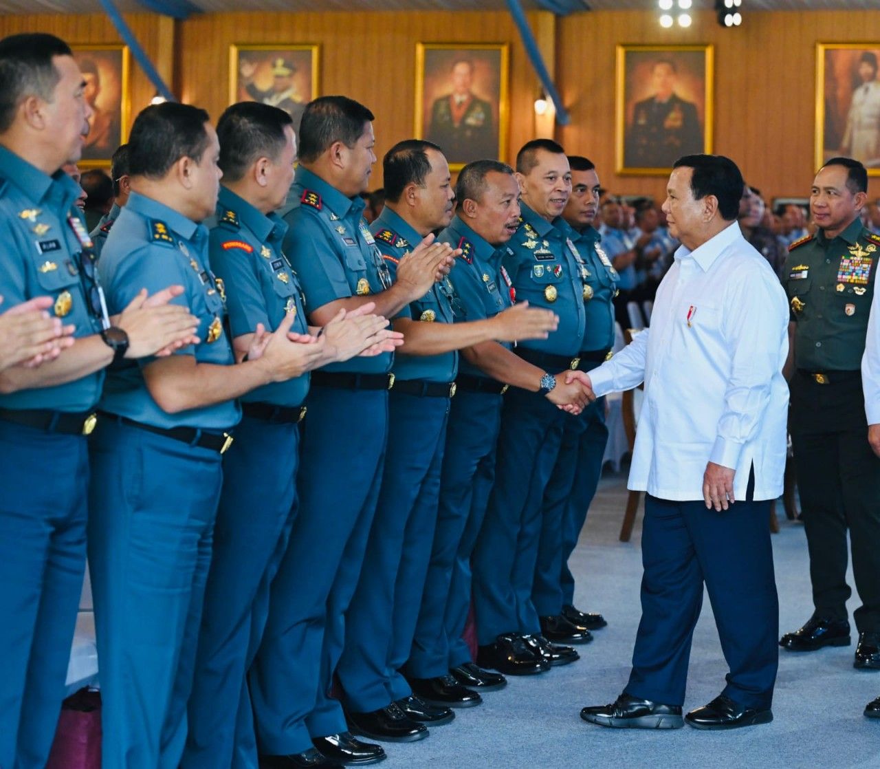 Dalam kesempatan tersebut, Presiden Prabowo Subianto didampingi Menteri Pertahanan, Sjafrie Sjamsoeddin dan Panglima TNI, Jenderal Agus Subiyanto, meyalami para prajurit saat mengikuti pengarahan Presiden kepada Komandan Satuan TNI.