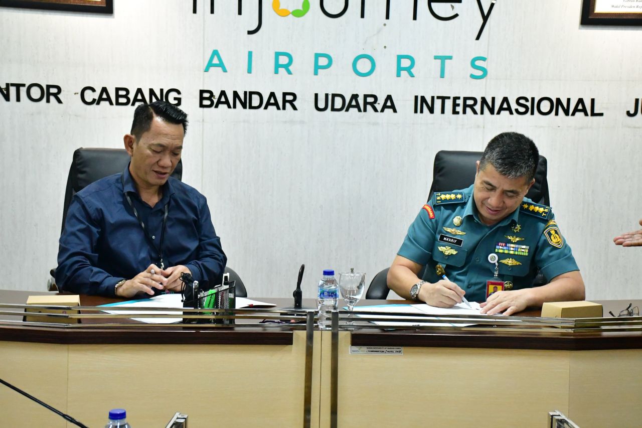 Penandatanganan kerjasama tersebut, ditandatangani Ketua Puskopal Puspenerbal, Kolonel Laut (P) Ma’arif dan General Manager PT. Angkasa Pura Indonesia, Laksamana Pertama TNI Muhammad Tohir di Kantor PT. Angkasa Pura Indonesia, Kantor Cabang Bandara Internasional Juanda.