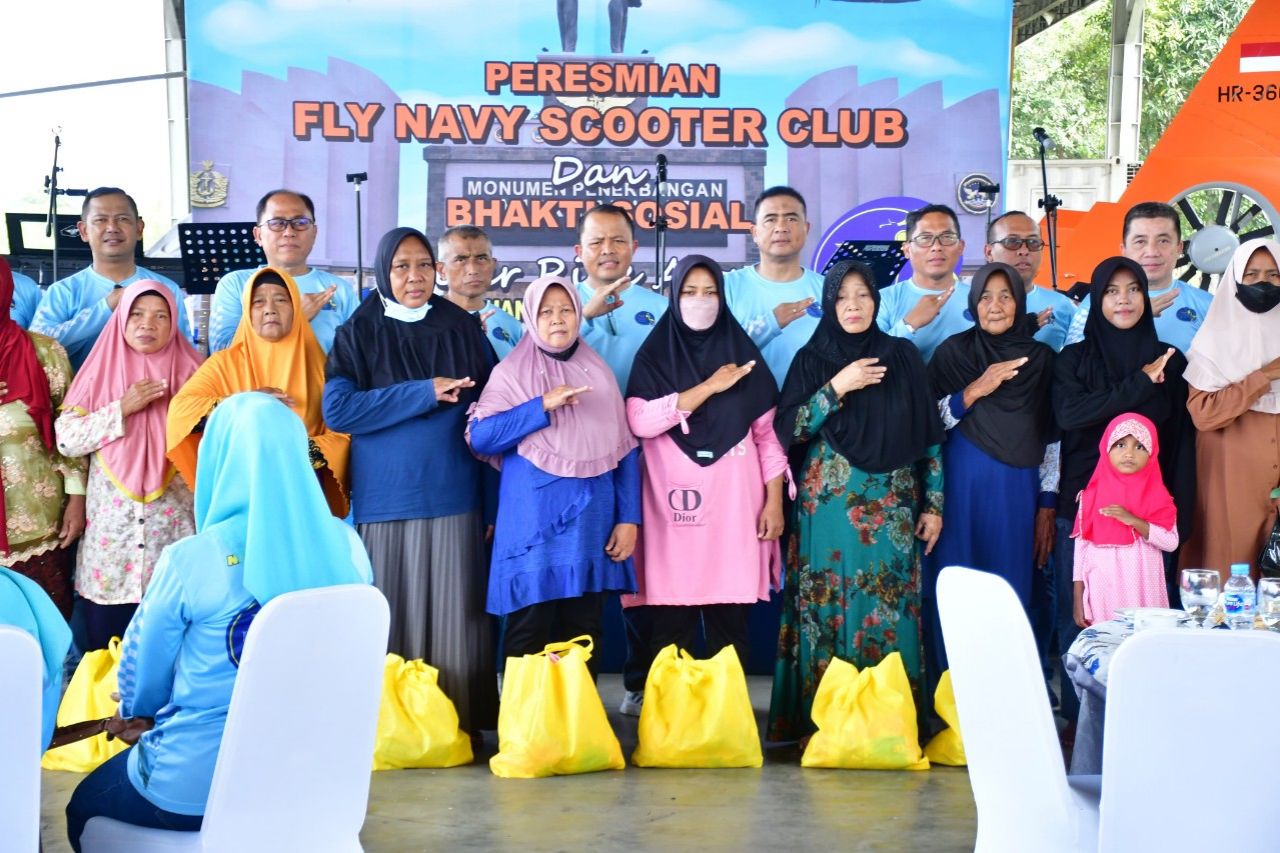 Surabaya, HNN - Komandan Pusat Penerbangan TNl Angkatan Laut (Danpuspenerbal), Laksda TNl Sisyani Jaffar meresmikan berdirinya Fly Navy Scooter Club (FNSC) yang diwarnai Bakti Sosial penyerahan paket Sembako kepada perwakilan Warga sekitar Pangkalan dan Warakawuri di Shelter Skuadron 400 Wing Udara 2 Puspenerbal Juanda, Sabtu (19/4/2025).
