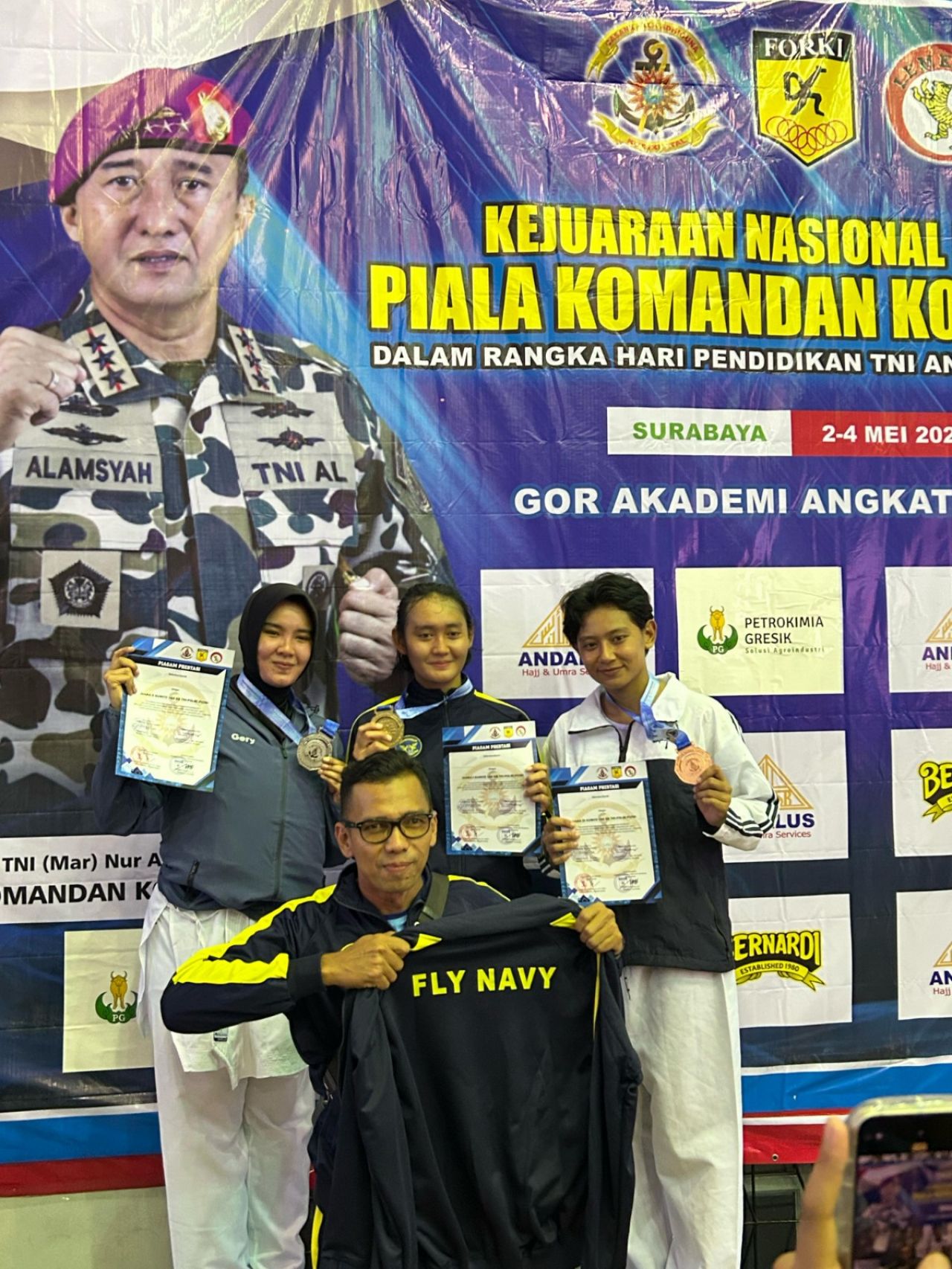 Kemudian disusul Serda Nav Uswatun Hassanah yang berhasil meraih Medali Perak di Kelas Kata TNI/Polri. Serda Mpu Chairunnisa Mustika dan Serda Nav Uswatun Hassanah ini, keduanya berdinas di Kolat Penerbal Puspenerbal.