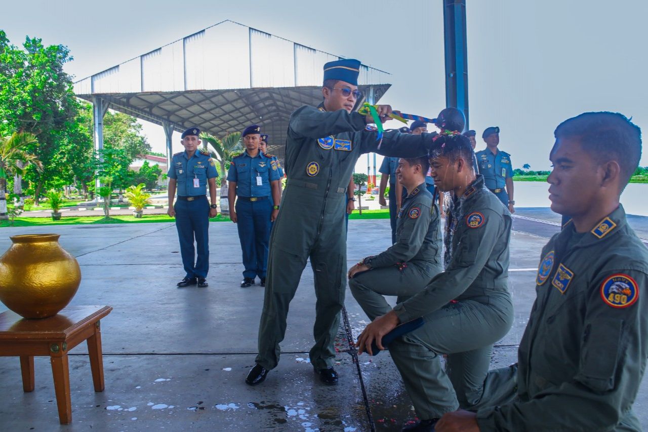 Dalam tradisi peresmian kopilot baru, Komandan Wing Udara 3 Kolonel Laut (P) Ahmad Novam menerima penghargaan dari Komandan Skuadron Udara 400 Wing Udara 2 Letkol Laut (P) Pranatha Aditya Rani, yang diwakilkan oleh Perwira Skuadron Udara 400.