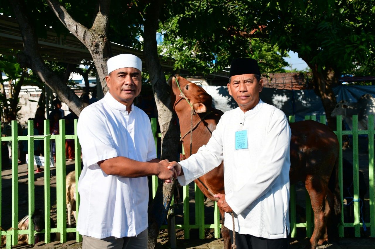 Penyerahan 53 ekor hewan kurban yang terdiri dari 8 ekor sapi dan 45 ekor kambing ini, dilaksanakan usai sholat Idul Adha bersama warga komplek Lanudal Juanda dan masyarakat umum di Lapangan Parkir Balai Prajurit Moedjono Poerbonegoro, Puspenerbal, Juanda.