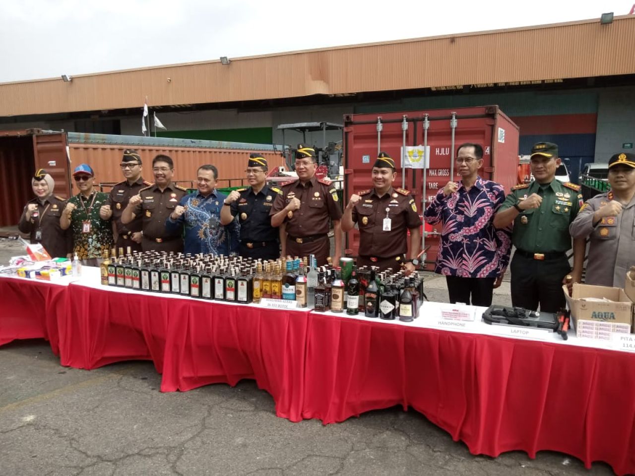 Barang bukti yang dimusnahkan berupa minuman keras (miras), pita cukai, serta barang elektronik seperti laptop dan handphone.