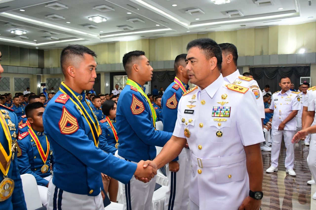 Surabaya, HNN - Komandan Pusat Penerbangan TNl Angkatan Laut (Danpuspenerbal), Laksda TNl Bayu Alisyahbana didampingi Ny. Dicca Bayu menghadiri Upacara Penutupan Pendidikan (Tupdik) dan Wisuda Sarjana Taruna Angkatan ke-70 dan 71 TA. 2025 yang dipimpim Kepala Staf Angkatan Laut (Kasal) Laksamana TNI Dr. Muhamad Ali di Gedung Maspardi AAL, Bumimoro, Surabaya pada Kamis (10/7/2025).