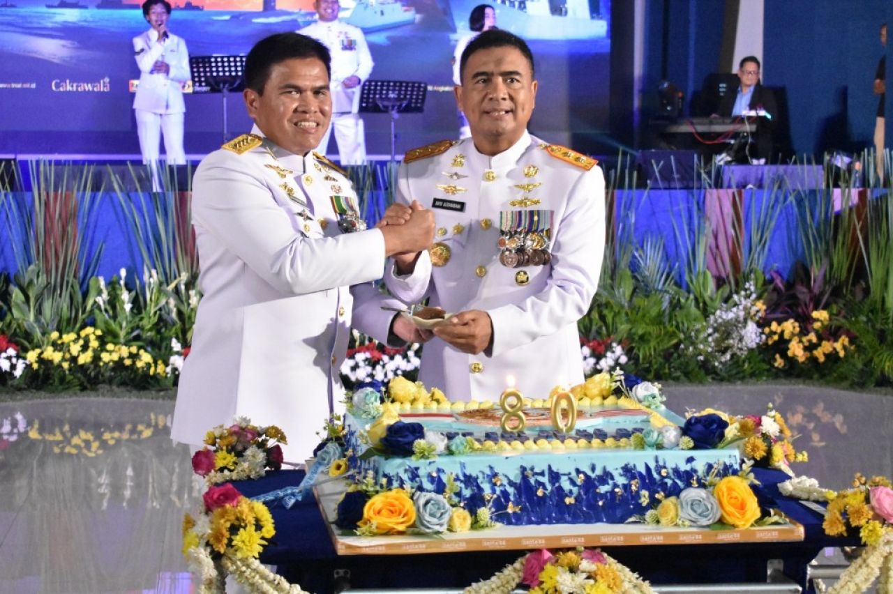 Kepala Staf Angkatan Laut (Kasal) Laksamana TNI Dr. Muhammad Ali memimpin secara langsung Upacara Peringatan Hari Jadi Ke-80 TNI Angkatan Laut tersebut.