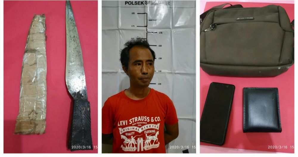 "Korban sempat mempertahankan tas yang berisikan barang berharga didalamnya. Namun pelaku membacok tanga korban dengan pisau sehingga tas korban berhasil dibawa kabur." Sebut Kapolsek Semampir Kompol Ariyanto Agus, Selasa (17/03/2020).