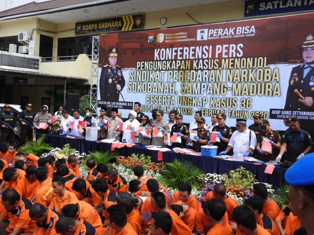 Dalam konfrensi Pres, Irwasda Polda Jatim Kombes Pol Awi Setiyono yang mewakili Kapolda Jatim. Mengatakan pengungkapan kasus Curat, Curas dan Curanmor ini masih didominasi kasus Narkotika Sokobanah yang merupakan jaringan Internasional.