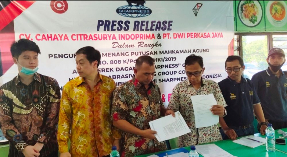 Surabaya, HNN - Melalui putusan Mahkamah Agung No. 808 K/Pdt.Sus-HKI/2019 tanggal 15 Oktober 2019, majelis Hakim yang diketuai oleh Syamsul Ma’arif, S.H., LL.M, Ph.D. memenangkan gugatan Hubei Yuli Abrasive Belts Group sebagai pemilik Merek SHARPNESS dan logo.