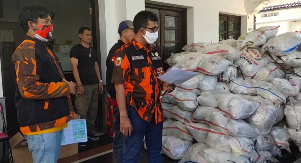 Paket logistik yang berisi 500 paket sembako dan sejumlah APD untuk kebutuhan relawan Gugus Tugas Task Force Kemanusiaan Covid-19 MPC Pemuda Pancasila Surabaya itu telah tiba di Surabaya, Sabtu (18/7/2020).