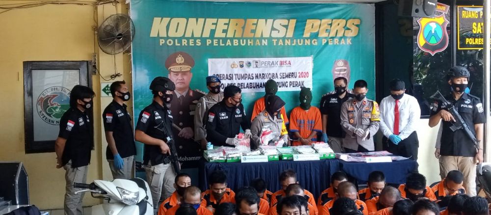 Surabaya, HNN - Konferensi Pers Polres Pelabuhan Tanjung Perak Surabaya ungkap kasus narkoba., berlangsung di Halaman Mapolres Pelabuhan Tanjung Perak. Senin, (07/09/2020).